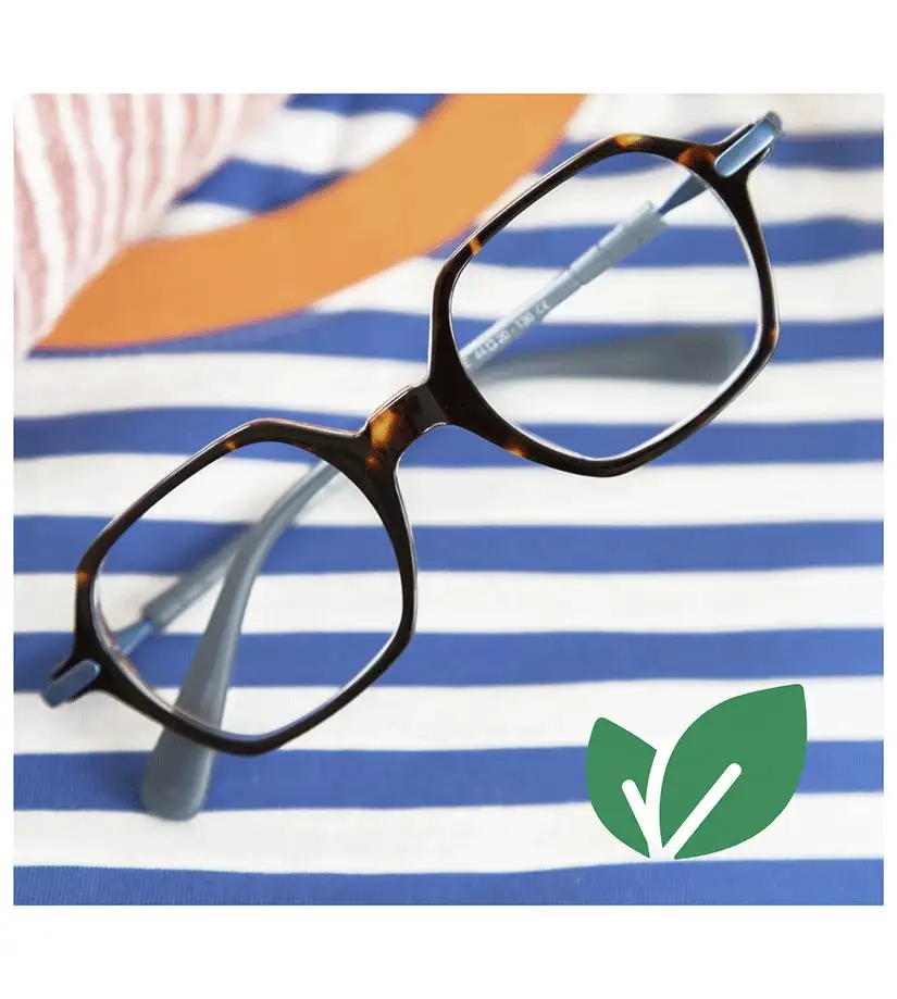 Nos montures de la marque sont réservées pour le 100% Santé. Il est difficile de respecter les obligations gouvernementales, avec nos convictions. Cependant la marque Bondet, nous permet de travailler avec des produits Français. Fabricant depuis1929 à Oyonnax, entièrement certifié OFG (Origine France Garantie), les montures bénéficient des toutes dernières technologies mais aussi du savoir-faire centenaire de leurs artisans. L’utilisation de matériau bio-sourcé français pour l’ensemble de la gamme et la distribution en circuit court permet de limiter au maximum l’empreinte carbone de la filière.